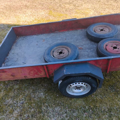 Vaihdetaan täysin uusittu tieliikennekuntoinen teräskärry leimassa olevaan henkilöautoon. Kärry on kokonaan viime vuonna uusittu.