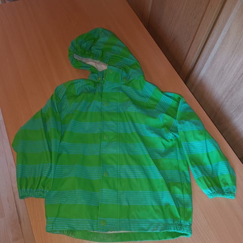 Kuningas sadetakki koko 110/116. Kauluksen reunassa fleeseä ja ohut vuori etu- ja takaosassa.