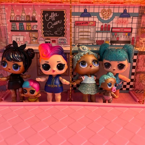 L.O.L. Surprise nuket ja leikkisetti. Kuvissa useita L.O.L. Surprise -nukkeja. Mukana erilaisia nukkeja, joilla on vaihtelevat hiustyylit ja -värit sekä joitakin vaatteita ja asusteita. Soveltuu lasten leikkeihin ja kokoelman täydentämiseen. Kaikki myytävät osat näkyvät kuvissa.