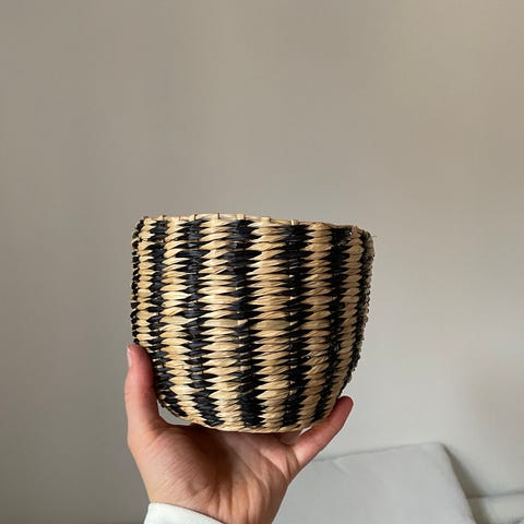 Punottu ruukunsuojus luonnonvärisenä. Valmistettu luonnonkuidusta, sisäpinta muovia helpottamaan puhtaanapitoa ja suojaamaan alustaa kosteudelta. Soveltuu esimerkiksi viherkasvien ruukunsuojaksi tai pienten esineiden säilytykseen sisätiloissa.