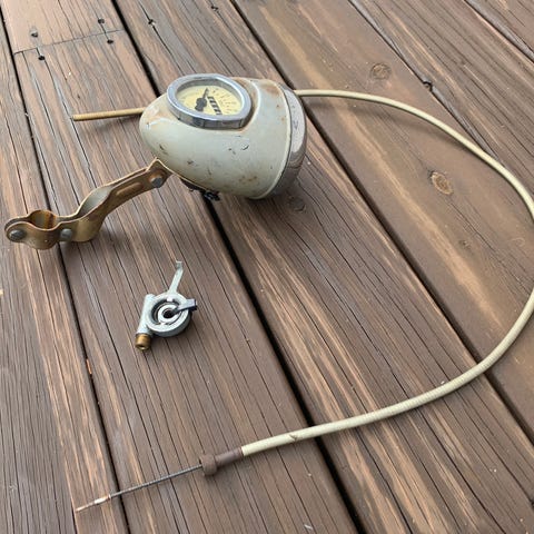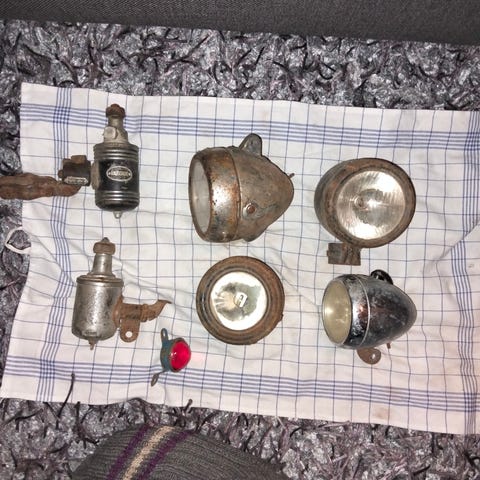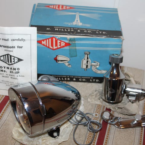 Myydään vanha kotimainen ruostumattomasta teräksestä valmistettu polkupyörän ajovalo kupu + dynamo . Valmistettu ilmeisesti 70-luvulla. Kiinnitysvarret vaikuttaisivat olevan galvanoitua terästä. Lyhtyä on mahdollisesti voitu käyttää myös mopedissa? Kuvun lasi ehjä, kaksi polttimoa, lyhdyn päällä olevaa vipua voi kääntää asentoihin, lyhty on sisältä tosi siisti ikäisekseen. Dynamon rengas pyörii, mutta raskaan tuntuisesti, lyhdyn ja dynamon metallivarret osineen tallella. Dynamon varren vapautusvipu toimii hienosti, eli kääntyy toiseen asentoon "rengasta vasten", ja voidaan vapauttaa takaisin. Toimivuutta ei ole voitu tarkistaa tämän enempää, ei valitusoikeutta. polku pyörä pyörän vintage retro mopedi 60-luvun pyörän polkupyörän metallinen ajo valaisin valot ajovalot pyöränlamppu ajovalo mopo mopedi tunturi 70-luvun 6v 3w