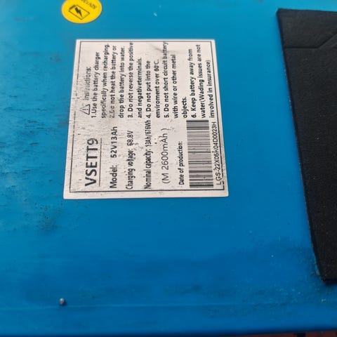 Mukuta 9 sähköpotkulaudan akku, jolla on ajettu kesä 2025. Tämä akku käy myös ainakin joihinkin Vsett Apex mallisiin sähköpotkulautoihin. Akku on erittäin hyvässä kunnossa ja en ehtinyt huomata, että akunkesto olisi heikentynyt. Myydään pois, koska skuutin runko vääntyi onnettomuudessa, mutta akku säilyi ehjänä.