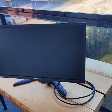 Näytön ja jalan yhdistävä ruuvi puuttuu. Muuten näyttö on todella hyvässä kunnossa. Ruuvin puuttuminen ei ole haitannut käyttöä.