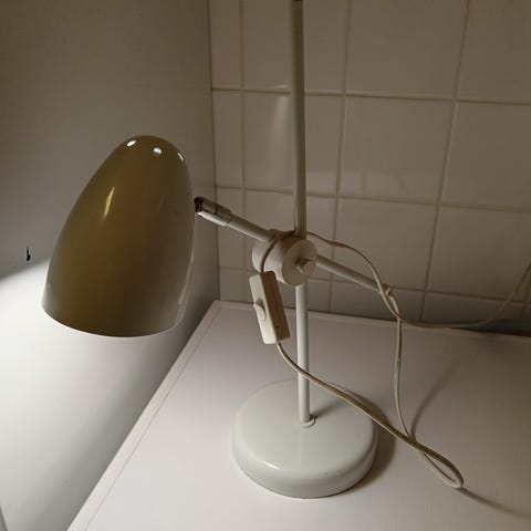 Valkoinen pöytävalaisin, kiinnitys pöydänkanteen/-reunaan, Kurikan keskustan tuntumassa ja kulkeutuu arkisin Jalasjärvelle