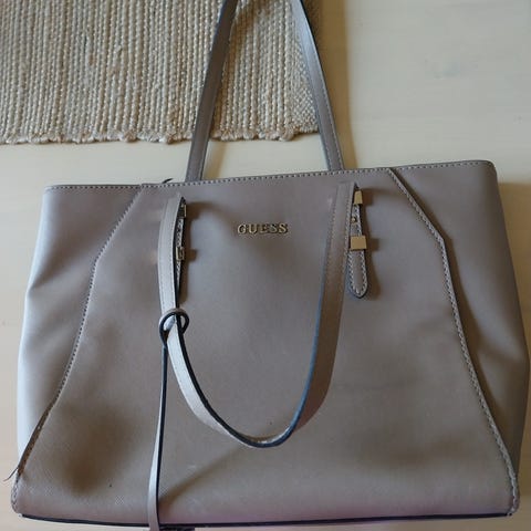 Guessing hyväkuntoinen valkoinen/beige logolaukku, kork 27cm, Lev 47 cm. Nouto, postit ostajan lukuun tai Tori-diili.