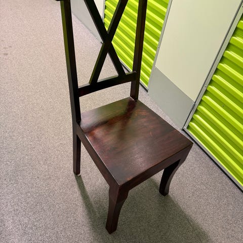 Tuoleja myynnissä 4 kpl. Myydään pareittain, vähintään kaksi kerralla. Hinta 10€ kpl. Istuinkorkeus 48 cm, selkänojan korkeus 102 cm.