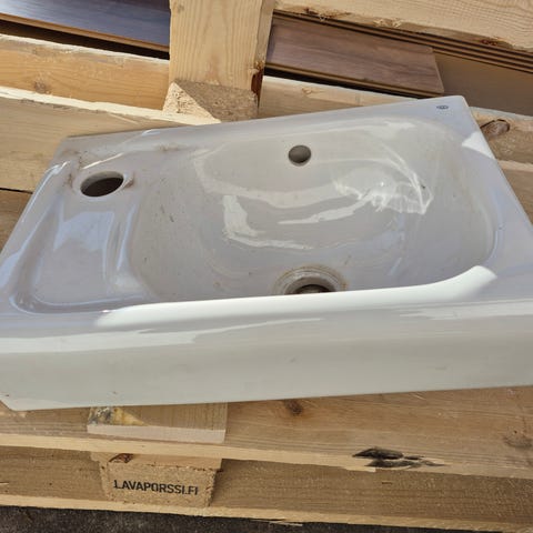 Kylpyhuoneen pesuallas ja hana valkoinen