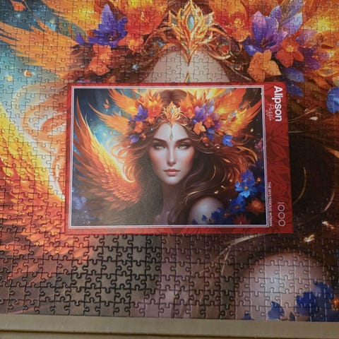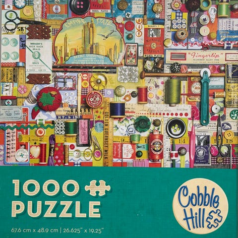 Hyväkuntoinen palapeli, purettuna omassa laatikossaan. Vänkyräpalat.