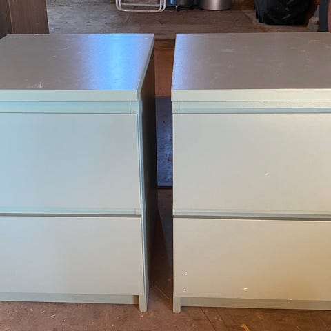 Myyntiin kaksi valkoista yöpöytää,hopeisilla vetimillä.🤍