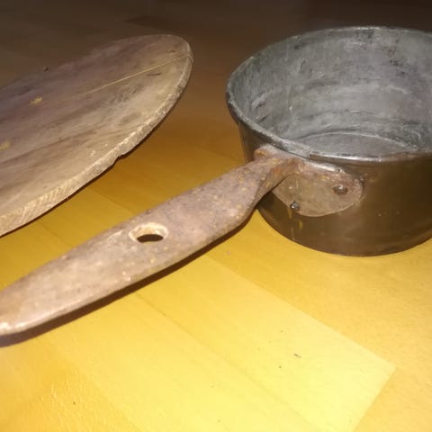 Vanha, yli 100-vuotias kuparikattila/-kasari. Ajanpatinaa. Halkaisija kattilan suuosassa on 20 cm. Itse olen käyttänyt vastaavia kattiloita koristeena tai viherkasvien suojaruukkuina. Keräily/koriste-esineet, messinki