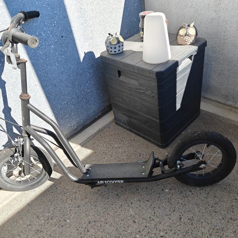Lumiskuutti, jossa keltainen runko ja mustia yksityiskohtia. Pari kertaa kokeiltu. Säädettävä ohjaustanko ja kokoontaitettava. Vain nouto.