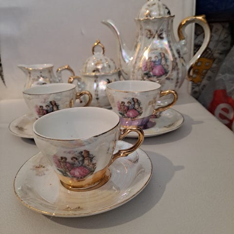 Kaunis vintage kahviastiasto Queen Anne -sarjaa (bone china, England) 🌸
