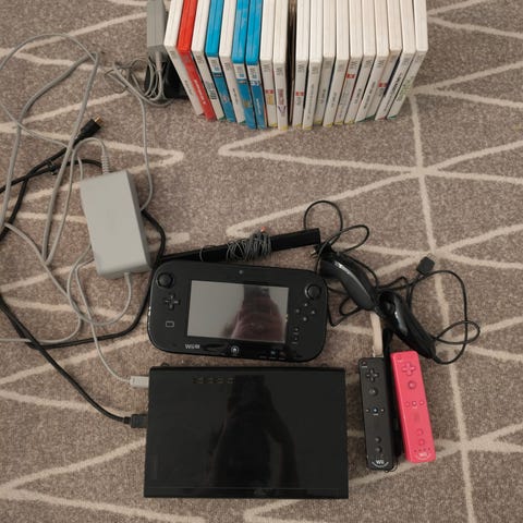 Kuvan pelit ja tarvittavat johdot. Sensor bar on hävinnyt, joten sen joutuu hankkimaan erikseen (maksaa n. alle 20e?) .