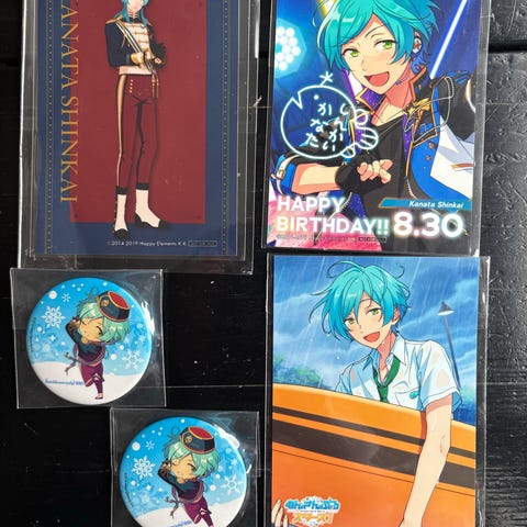Setti Ensemble Stars Aoi Hinata-oheistuotteita. Kaikki hyväkuntoisia, ei moitittavaa. Hinta setiltä, voidaan myydä myös erikseen ao. hinnoin: