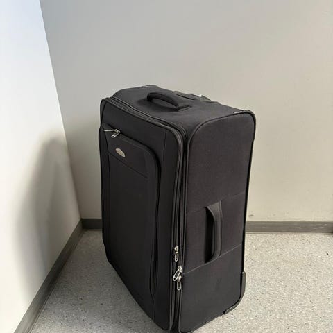 Primark matkalaukku. Materiaalina kangas, väri musta. Laukussa on vetoketjulliset etutaskut pientavaroille sekä päälokero vaatteille ja muille matkatavaroille. Laukussa on useita kantokahvoja sivuilla ja ylhäällä, sekä pyörät helpottamassa kuljettamista. Soveltuu yleiseen matkakäyttöön lyhyille ja pidemmille matkoille.