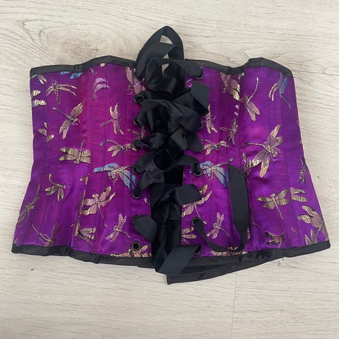 Tanssipuku. Yläosa turkoosi korsettimainen, koristeena karvaa, kultanauha, paljetteja ja muutama strassi. Alaosa musta minihame kerroshelmalla. Vyötärö 68cm. Uusi käyttämätön. Mukana tulee pussillinen paljetteja.