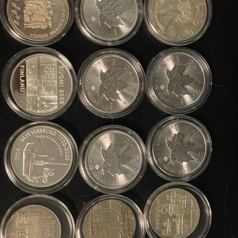 Hopeinen juhlaraha 19 g ja eurokolikot 2004