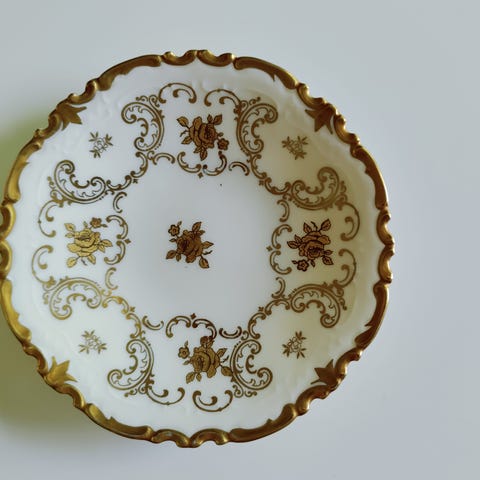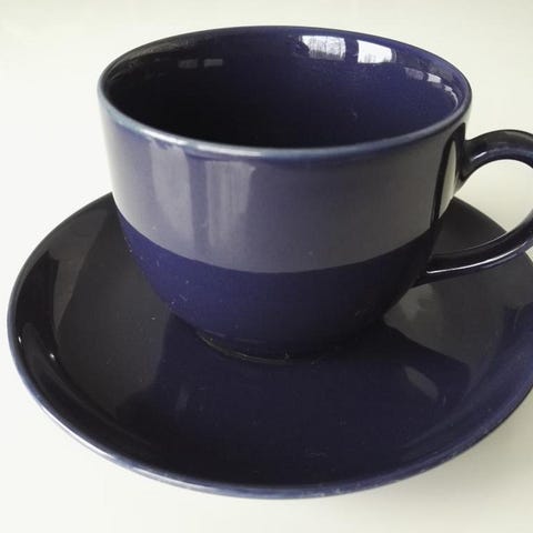 Kahvikupin asetti/aluslautanen. Halkaisija n. 13,8 cm ja korkeus n. 1,6 cm.