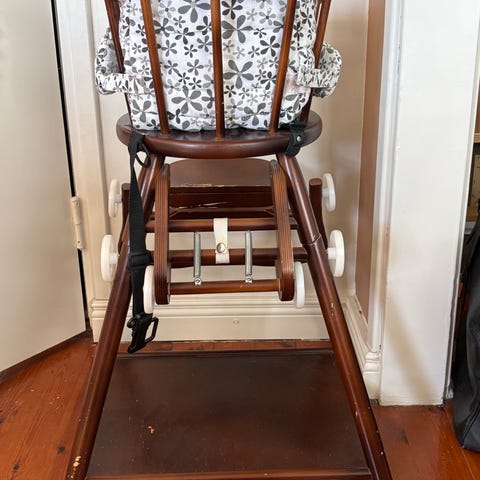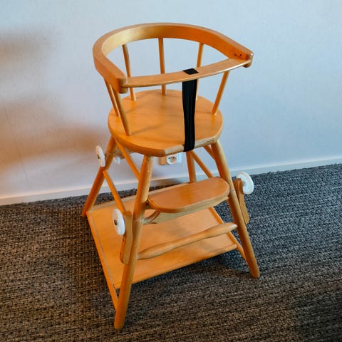 Yleisilmeeltään siisti mummola käytössä ollut valkoinen syöttötuoli.