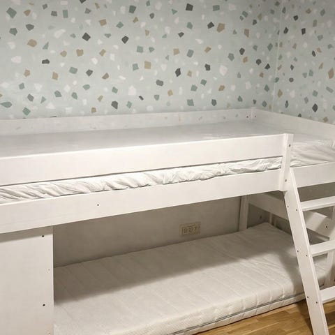 Myydään kovasti tykätty ja paljon käytetty parvisänky. Käytön jälkiä siis on. Kuvissa näkyy osa niistä. Pohjaa vahvistettu.