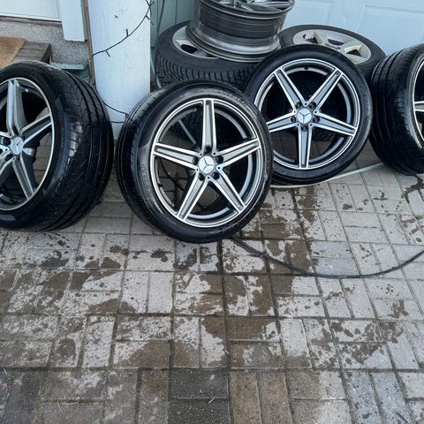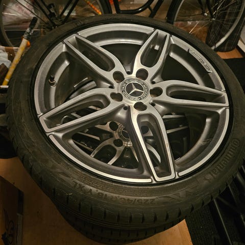 Erittäin siistit amg vanteet continental premium contact7 kesärenkailla, renkaat akettu yhden kesän, yksi rengas kuulunut vähän enemmän. Eturenkaat 245/45R18 takarenkaat 275/40R18.