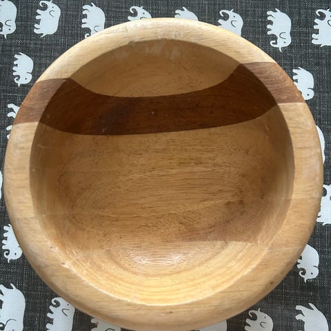 Arabia puinen kulho. Ehjä ja siistikuntoinen, mutta alalaidassa tummentumaa/likaa, joka näkyy kuvissa. Huomioitu hinnassa. Halkaisija n. 30cm.