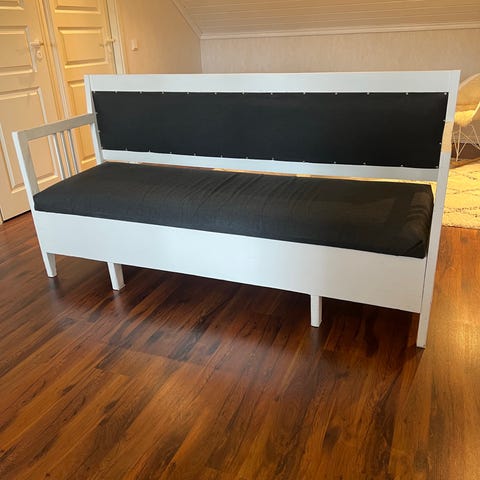 Kuvien mukainen levitettävä puusohva, vuuodevaatelaatikolla ja patjoilla, vaatii pintakäsittelyn.Hinta 25.Kuljetus lähialueelle Ok.