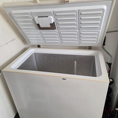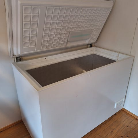 Hyvin toiminu pakastin nyt tyhjänä .väliseinä joka toimii tukena kun kansi avataan menee lähelle seinää ei jousikoteloita haittona.250 litraa tilavuus pikku näpäkkä pakastin