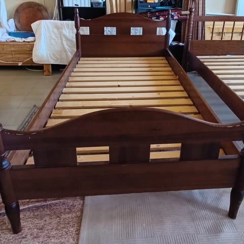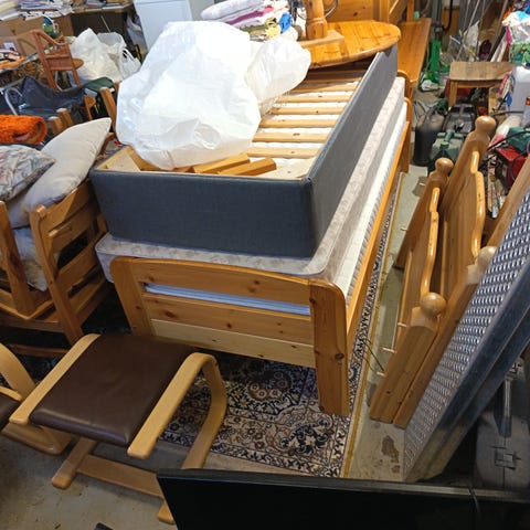 Päästä vedettävä sänky (pitenee noin 190 cm pitkäksi), vanhaa kunnon käsityötä