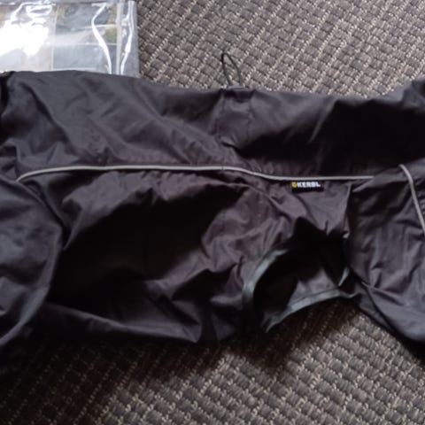 Sininen sadehaalari, koko noin 40cm. On ehjä, mutta vaatii ainakin pesun.