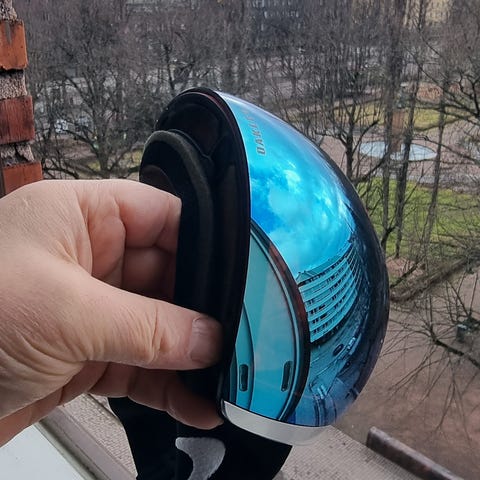 Oakley laskettelulasit peililinssillä. Musta kehys ja oranssiin taittava peililinssi. Mukana valkoinen suojapussi säilytystä ja kuljetusta varten. Soveltuu lasketteluun ja lumilautailuun.Saa tarjota hintaa👍