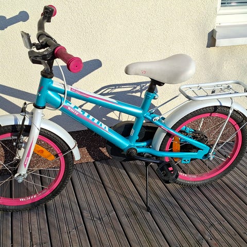 Tunturi Eetu lastenpyörä 16". Käytetty ja kulunut (kuvat), mutta toimii. Ilma vaikuttaa pysyvän renkaissa, mutta nekin muutaman vuoden vanhat. Säilytetty pari vuotta kuivassa varastossa. Vain takaheijastin, muut puuttuu. Ketjunsuojus puuttuu.