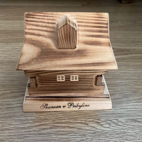 Kauniisti tehty pieni puinen rasia saranoidulla kannella.