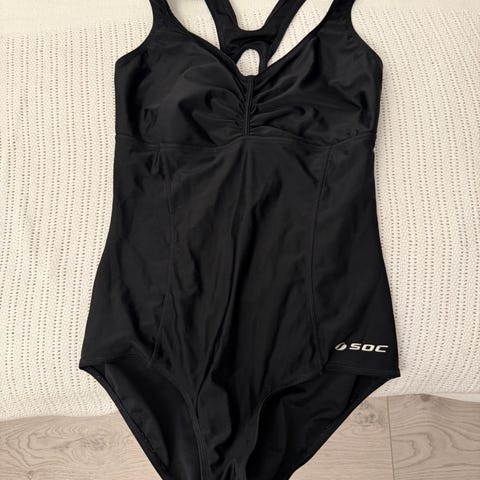 Vähän käytetty lahkeellinen uimapuku. Rypytys vatsan kohdalla, leveät ja säädettävät olkaimet. Materiaali: 80% polyamidi, 20% elastaani.