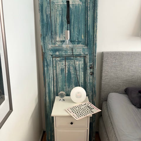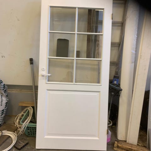 Hyväkuntoinen valkoinen sisäovi karmeineen +helat +avain lukkoon, koko 9×21