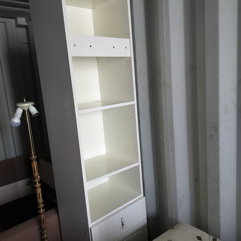 Pyökinvärinen hyllykaappi maitolasiovilla.