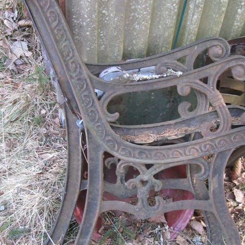 Maalattu vihreäksi, olleet ukona, joten maali ja pinnat kuluneet ja ruostuneetkin.