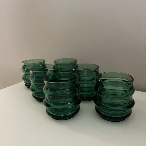 Todella kauniin vihreät Kaj Frankin Rustica snapsilasit 6 kpl.