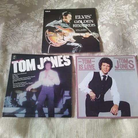 Elvis Presley LP-levykokoelma, yhteensä 4 vinyylilevyä.