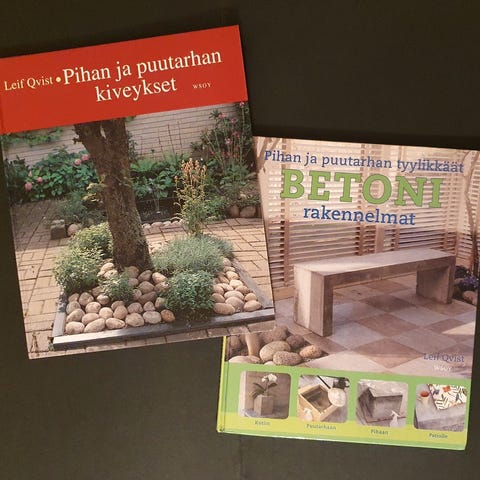 suihkulähteitä, kiviä, kasveja, kaloja ja erityyppisiä altaita