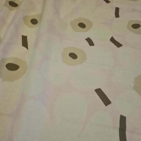 Unikot vaaleanpunaisia. Lievä II-laatu, koska tummissa osissa väri hieman levinnyt. Katso kuvaa. Tehdasleveys 145cm.