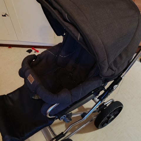 Emaljunga lasten rattaat harmaalla kankaalla. Kahden lapsen käyttämät. Kumit vaihdettu puhkeamattomiin. Työntyaisan nahka on aika kulunut (kuva) ja heijastintarrat vähän kärsiineet. Kankaita saa irti ja voi pestä. Jarrut toimii. Sadesuojan saa myös halutessaan mukaan. Käytetyt mutta hyvät vielä seuraavalle.