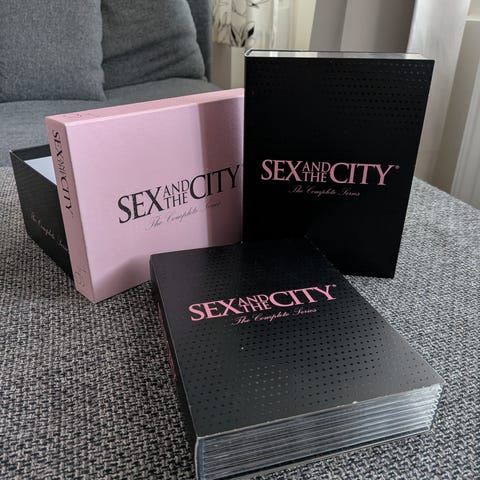 Sex and the City The Essential Collection DVD-boksi. Sisältää televisiosarjan Sex and the City -jaksoja DVD-levyinä. Pakkaus on laatikkomallinen kokoelma, jossa on useita levyjä sarjan katseluun.