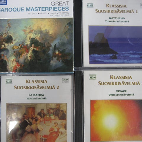 Myydään klassisenmusiikin cd-levyjä 3,00 euroa kappale. Kaikki cd:t kuunneltu ja todettu toimiviksi. Cd:ssä voi olla naarmuja & kansipapereissa jälkiä/omistuskirjoituksia, mutta cd-kotelot ovat ehjät. Postituskulut ostajalle ja noutokin sovittavissa.