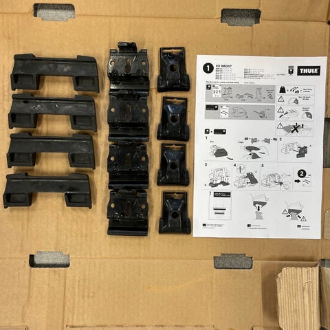 Thule kattotelineen jalkasarja. Mustat jalat henkilöauton kattotelineeseen.