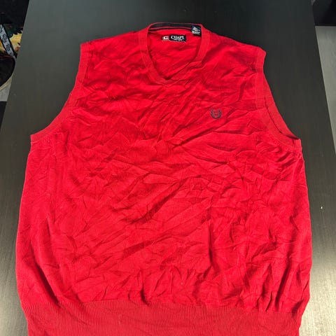 Myydään klassinen ja tyylikäs Chaps-merkkinen neuleliivi (merkki on alkujaan Ralph Laurenin perustama). Liivi on upeassa kirkkaanpunaisessa värissä ja rinnassa on brodeerattu logo.
