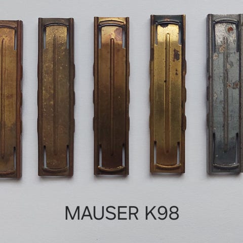 Saksalaisen 8mm pst kiväärin, puolalaisen 8 mm WZ-35 pst kiväärin sekä kaksi 8x57 SS-kantaleimattua patruunaa.