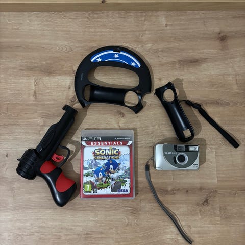 Playstation 3 Move ohjaimet, kamera ja pelipaketti. Pelit: Sports Champions, Sports Champions 2 ja DanceDanceRevolution. Yhdessä kotelossa levyn pidike rikki.