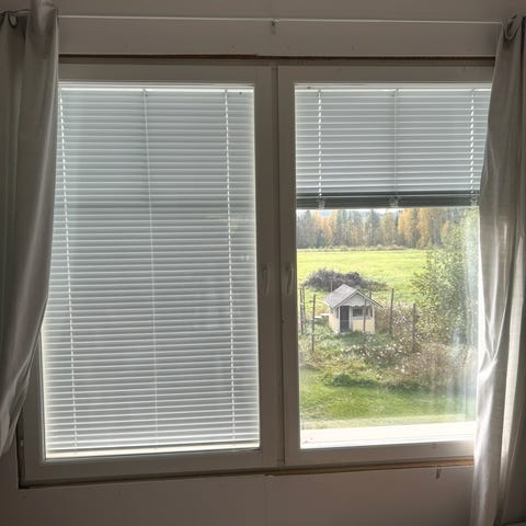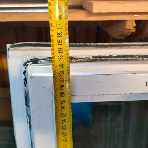 Puuikkunat, useita eri kokoja. Koko merkitty karmeihin, noin 124 x 58 cm, 124 x 112 cm ja 66 x 32 cm. Valkoiseksi maalatut puukarmit ja yksinkertaiset ikkunalasit. Sopivat esimerkiksi rakennus- tai kunnostuskohteisiin, varastoihin, piharakennuksiin, kasvihuone. Hinta noin.