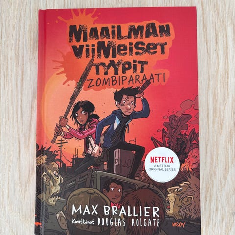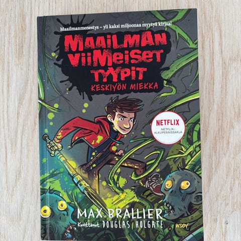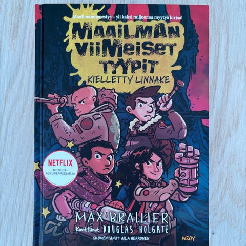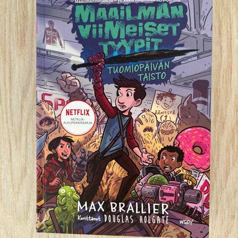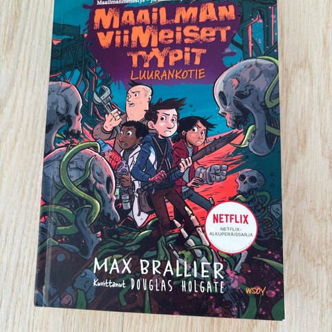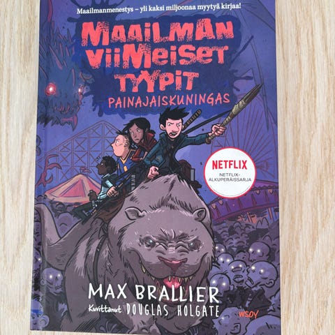 Max Brallierin Maailman viimeiset tyypit: Quintin ja Dirkin sankaritehtävä -kirja. Kovakantinen. Luettu kerran, ei näy käytön jälkiä.
